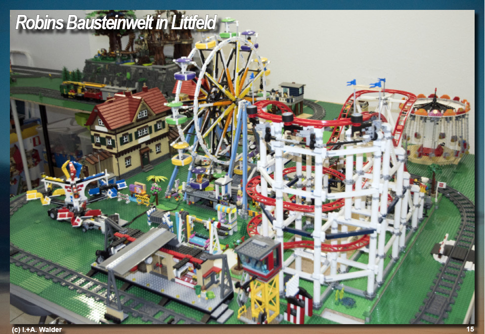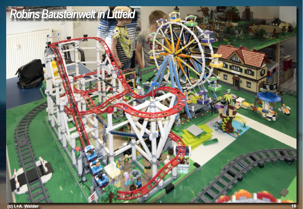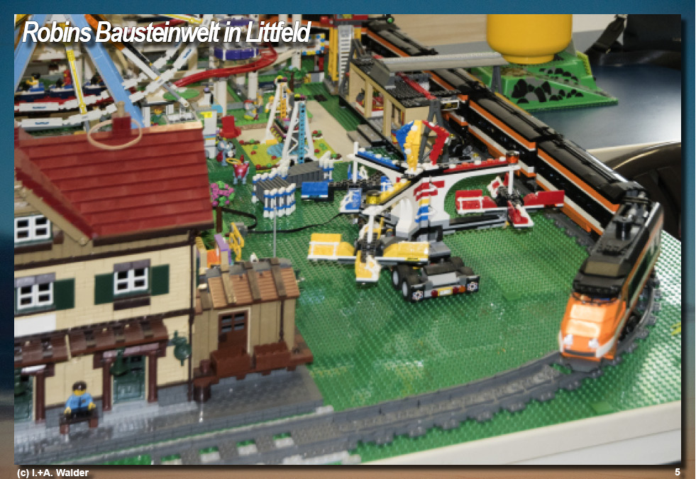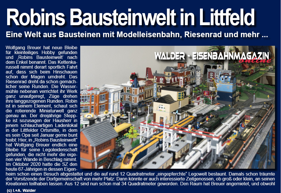 Das Kettenkarussell beschleunigt mit hoher Drehzahl und verdeutlicht anschaulich, wie durch Fliehkraft und Kettenlänge eine stabile Kreisbewegung entsteht, während das Riesenrad im direkten Vergleich mit gleichmäßigem, ruhigem Umlauf arbeitet und so zwei unterschiedliche Bewegungsprinzipien nebeneinander erlebbar macht. Die benachbarte Wassermühle verrichtet kontinuierlich und nahezu geräuschlos ihre Arbeit und demonstriert einen einfachen, aber effektiven mechanischen Antrieb, bei dem Rotationsenergie zuverlässig übertragen wird, während die Züge ihre langgezogenen Runden ziehen und den Gesamtablauf der Miniaturwelt strukturieren. In diesem technisch fein abgestimmten Umfeld bewegt sich Robin vollkommen selbstverständlich, beobachtet aufmerksam die rotierenden Elemente und reagiert sensibel auf Bewegungen, Abläufe und Zusammenhänge, was zeigt, wie intuitiv sich komplexe Technik auch für sehr junge Betrachter erschließen lässt. Der dreijährige Junge ist gewissermaßen der Mittelpunkt dieser Anlage, die sich in einem schlauchartigen Ladenlokal in der Littfelder Ortsmitte befindet und in der sein Großvater Wolfgang Breuer seit Januar eine dauerhafte Präsentationsfläche für seine umfangreiche Bausteinwelt geschaffen hat. Mit der Einrichtung von „Robins Bausteinwelt“ hat Breuer seine langjährige Legoleidenschaft erstmals aus dem privaten Wohnbereich ausgelagert und in einen öffentlich zugänglichen Raum überführt, wodurch Planung, Aufbau und Betrieb eine neue organisatorische und technische Dimension erhalten haben. Bereits im Oktober 2020 war eine deutlich kleinere, auf rund zwölf Quadratmeter begrenzte Miniaturwelt im Eigenheim entstanden, deren beengte Platzverhältnisse die Weiterentwicklung der Anlagen sichtbar einschränkten. Schon damals bestand der Wunsch nach mehr Raum, um nicht nur größere Bauwerke realisieren zu können, sondern auch Besuchern die Möglichkeit zu geben, die Konstruktionen aus nächster Nähe zu betrachten. Mit der Anmietung von nunmehr 34 Quadratmetern wurde dieser Schritt vollzogen, doch zeigt sich rasch, dass auch diese Fläche durch die stetige Erweiterung der Anlagen schnell an ihre Grenzen stößt. Die hohe Dichte an Modellen erfordert eine gezielte Besucherführung, sodass Gäste tatsächlich nur in kleinen Gruppen durch den Raum geleitet werden können, um Technik, Details und Bewegungsabläufe sicher und übersichtlich zu präsentieren. Perspektivisch ist vorgesehen, gezielt Kindertagesstätten anzusprechen und die thematisch vielfältigen Anlagen wie Burgen, Hafenlandschaften, Freizeitparkmodule und mittelalterliche Szenarien als anschauliche Demonstration kreativer Bau- und Konstruktionsmöglichkeiten einzusetzen. Die Reaktionen erster Passanten zeigen, dass die Wirkung der Anlage weit über reines Spiel hinausgeht und deutlich macht, welches technische und gestalterische Potenzial in den Bausteinen steckt. Mit inzwischen weit über 100 000 verbauten Elementen ist eine komplexe, funktional abgestimmte Miniaturwelt entstanden, die kontinuierlich erweitert wird und deren vollständiger Umzug aus dem Wohnhaus noch nicht abgeschlossen ist. Parallel dazu wächst der Wunsch nach einem größeren Raum, der zusätzliche Module, klarere Wegeführungen und einen noch stabileren Präsentationsbetrieb ermöglichen würde, wobei die wirtschaftliche Tragfähigkeit durch eine überschaubare Miete gewahrt bleiben soll. Ein Raum jenseits der 50-Quadratmeter-Marke erscheint dabei als realistisches Ziel. Währenddessen verfolgt Robin die Erklärungen seines Großvaters aufmerksam und zeigt bereits ein bemerkenswertes technisches Verständnis, als er selbstständig eingreift, die Wassermühle abschaltet und auf die Notwendigkeit hinweist, Energie zu sparen, was eindrucksvoll belegt, wie spielerisch sich technische Grundprinzipien in dieser Umgebung vermitteln lassen. (c)WV
